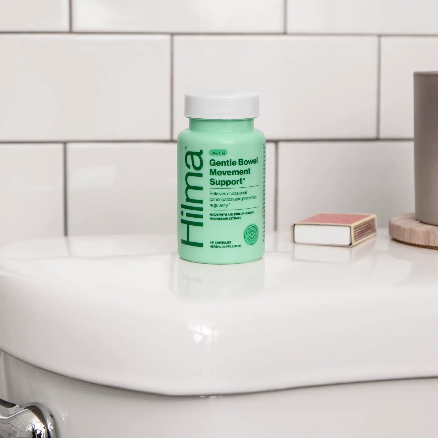 Hilma Gentle Bowel Movement Support is a natural supplement designed to promote healthy bowel movements and support digestive health.